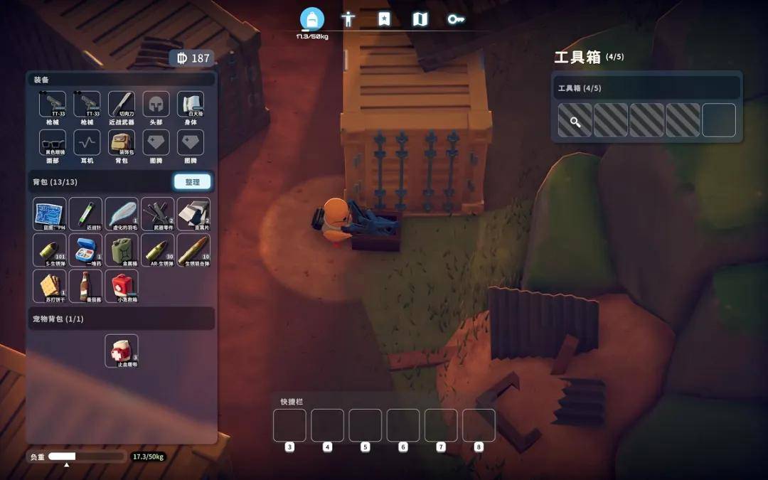 核心机制的设计也是如此,比如玩家刚进入游戏时会有一个承重45kg的背包,随着拿的东西逐渐变多,慢慢会得到如行走速度降低这样的减益◆◆,背包的格子也只有13个,所以不是只要负重范围内就能无限的装凯发k8娱乐官网手机版,游戏也提供了一个死亡后会将物品自动送回基地的“宠物背包”,适当保护了高价值物品■◆■。