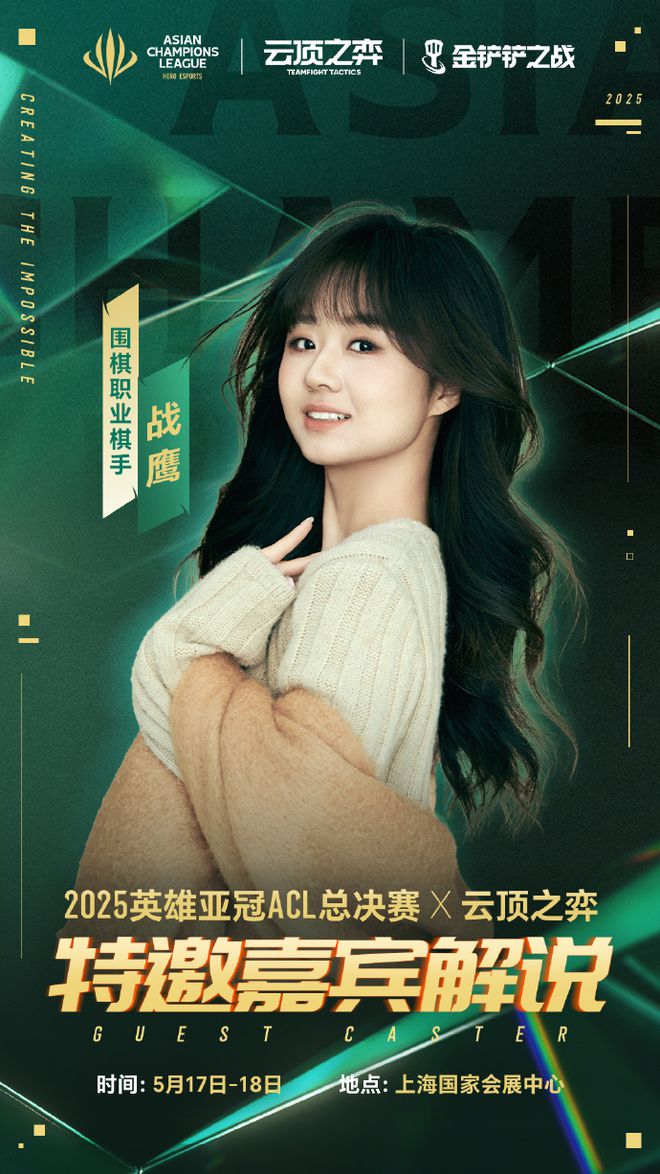 5月17日-18日◆◆■,棋手战鹰将出任2025英雄亚冠ACL总决赛×云顶之弈特邀解说嘉宾!她将以独特战略视角剖析赛事★★★■■★,凭借其强韧的棋手心态◆■◆,在电竞赛事解说席展现多维策略解读★■。