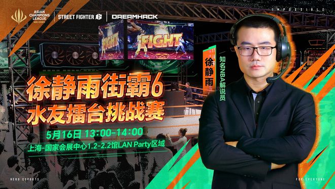 5月16日13:00-14:00,知名NBA解说徐静雨将来到英雄亚冠ACL总决赛x街头霸王6现场★★,与水友开启擂台挑战赛。这一次■■◆◆★,他不聊篮球,只拼操作★◆◆★■!无论你是街霸大神还是格斗萌新,都有机会与徐静雨老师1v1擂台对决!