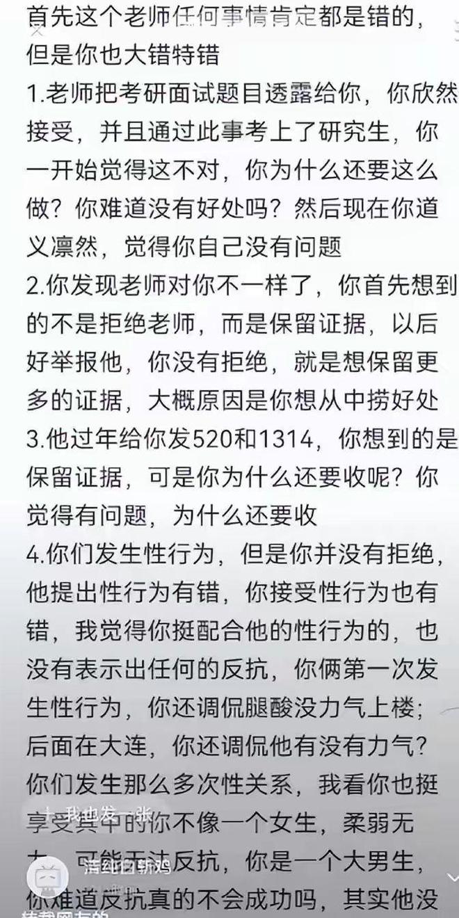 有两位同学发声★◆◆■,对此事同学认为常旭强也是有错的一方。第一,他一边接受老师宫琳给他提供的便利,一边又保留证据日后举报老师◆◆■◆,心机不是一般重★◆■■★★。第二,同学认为事情发生,跟常旭强的性格和原生家庭有关,他非常缺爱,一开始就对老师的关心看成了是爱。第三,同学认为,常旭强一开始就明知道是错的★■,却一直不举报,一而再再而三的继续下次,他这样的行为也是纵容★■◆◆■◆。