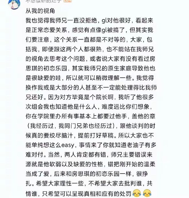 另外一位同学也出来发声,他和很多同学都跟宫琳接触过★◆。给他们的感觉宫琳是一个专业知识非常牛的人,跟他谈判提前就要打好草稿◆■★,可见不是一般人能得到他的“关爱”。而常旭强可以得到那么多,同学认为两人都有错。